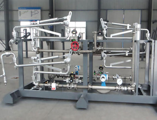 油品定量裝車橇裝組是指將每一個裝車鶴位內的儀表和設備集成在一個專用的框架結構內,儀表和設備包括裝車鶴管、流量計、防溢油靜電報警控制器、壓力變送器、裝車流量控制閥、緊急切斷閥,裝車泵、批量控制器等, 只預留工藝連接口和控制電源和通訊接口,這個整體集成部分稱為裝車橇。與傳統的裝車控制系統就地組裝比較,裝車橇可以節省現場設計和現場施工量,縮短項目工期,提高裝車控制系統的質量。